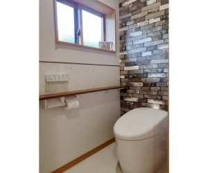 - プライベート空間のトイレはクロスで遊び心をプラス