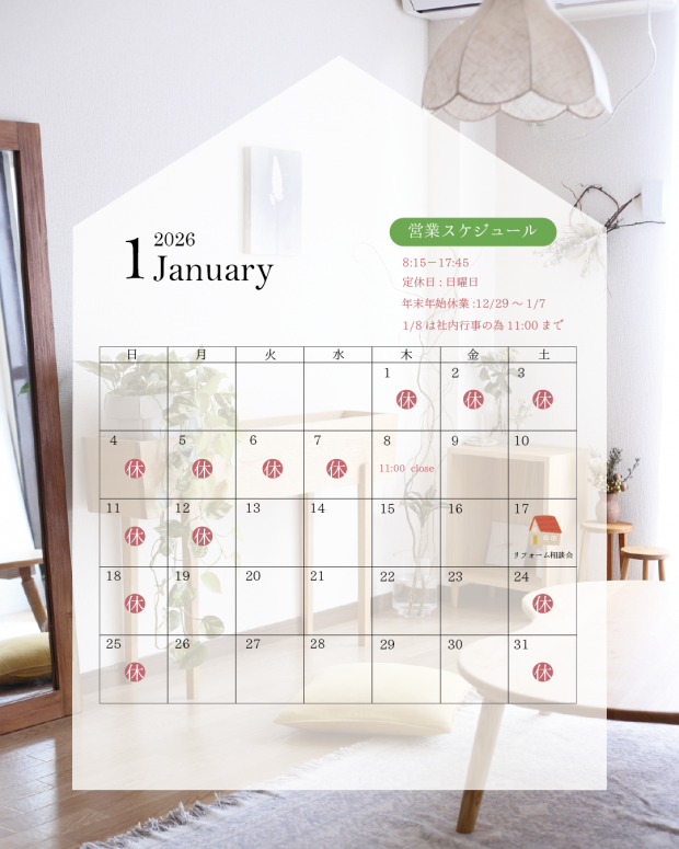 また、社内行事のため1/8は11:30までの営業とさせていただきます。ご了承ください。